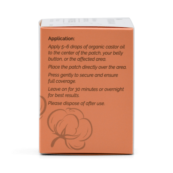 Apply 5–6 drops of organic castor oil to the centre of the patch or directly onto your belly button or the affected area.